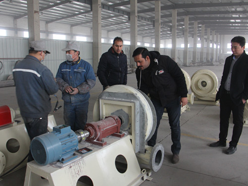 2015年8月,來自埃及的客戶對(duì)我司玻璃鋼耐酸堿風(fēng)機(jī)的風(fēng)壓、風(fēng)量、電流等進(jìn)行了檢測(cè),并與我司技術(shù)領(lǐng)導(dǎo)進(jìn)行了風(fēng)機(jī)技術(shù)交流,客戶給予了很高的評(píng)價(jià),認(rèn)為我公司產(chǎn)品很符合他們公司對(duì)供應(yīng)商的考核標(biāo)準(zhǔn),達(dá)成合作協(xié)議。